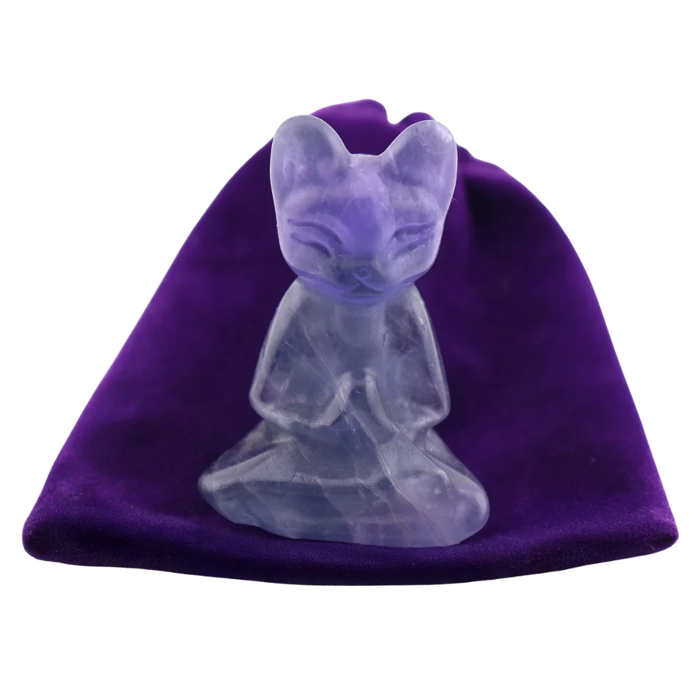 A carved fluorite piece with deep indigo and violet tones, polished to highlight the mineral’s natural colour and smooth finish.
